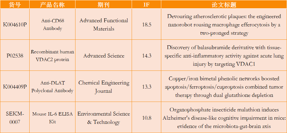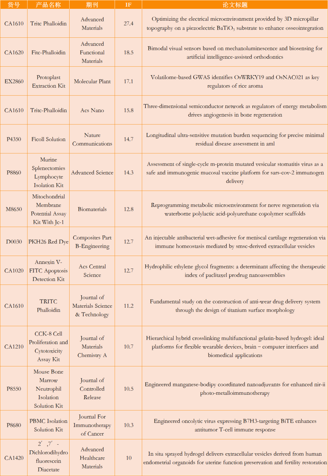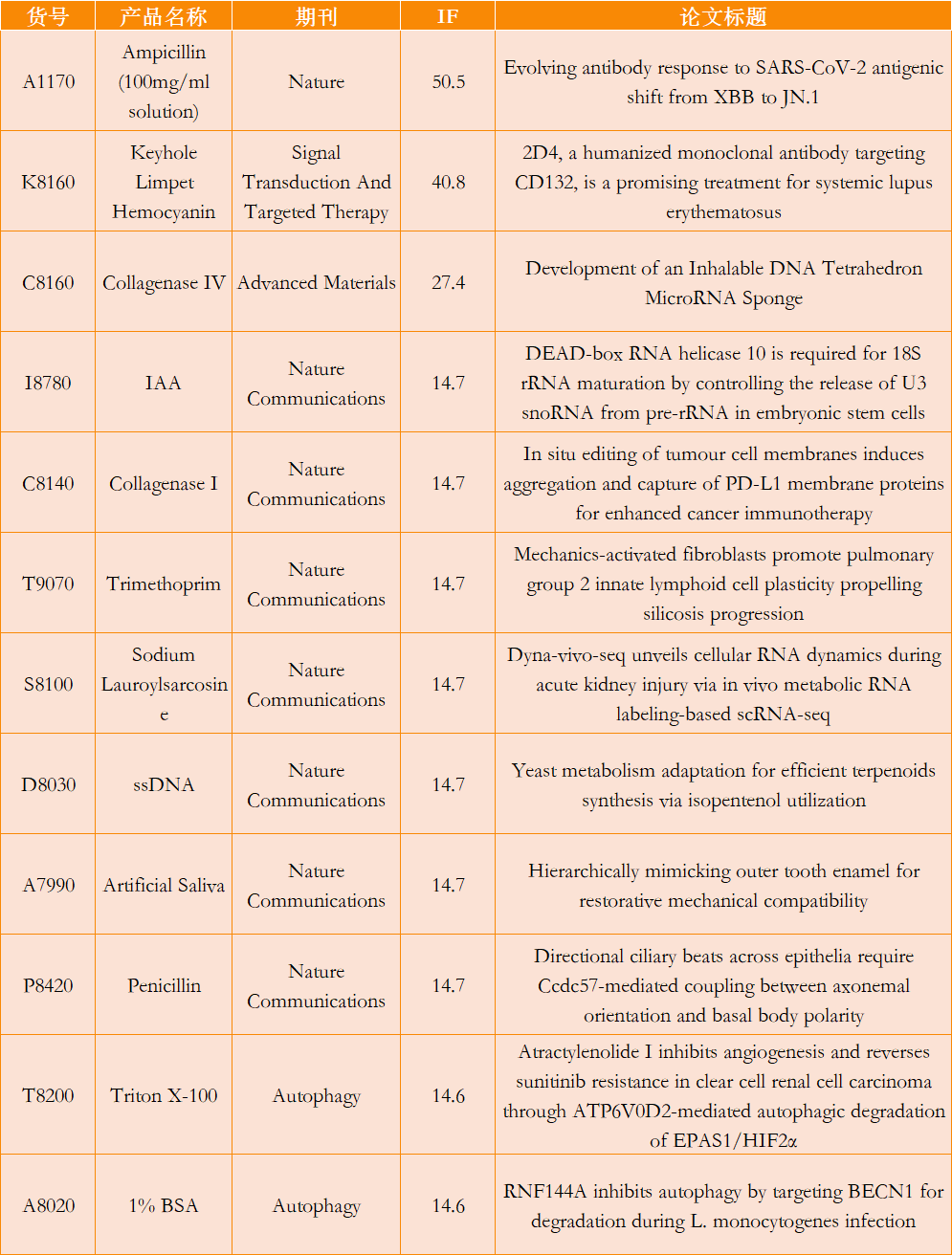 本期,我们精心挑选了10篇IF超过14.7分的杰出文献,涵盖了抗体、生化试剂盒、染色液、小分子化合物、标准品、细胞检测试剂盒、细胞器提取试剂盒、细胞分离液等多种产品种类,供各位有需要的友友参考。
