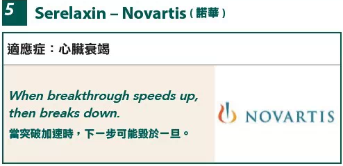 Norvatis选择以单一临床三期试验数据提出继续复审,但美国FDA与欧洲药物管理局(EMA)都於2014年对serelaxin下了逐客令,并决议待进行中的6,300 名病患的临床三期试验结果於2016年出炉后再议。