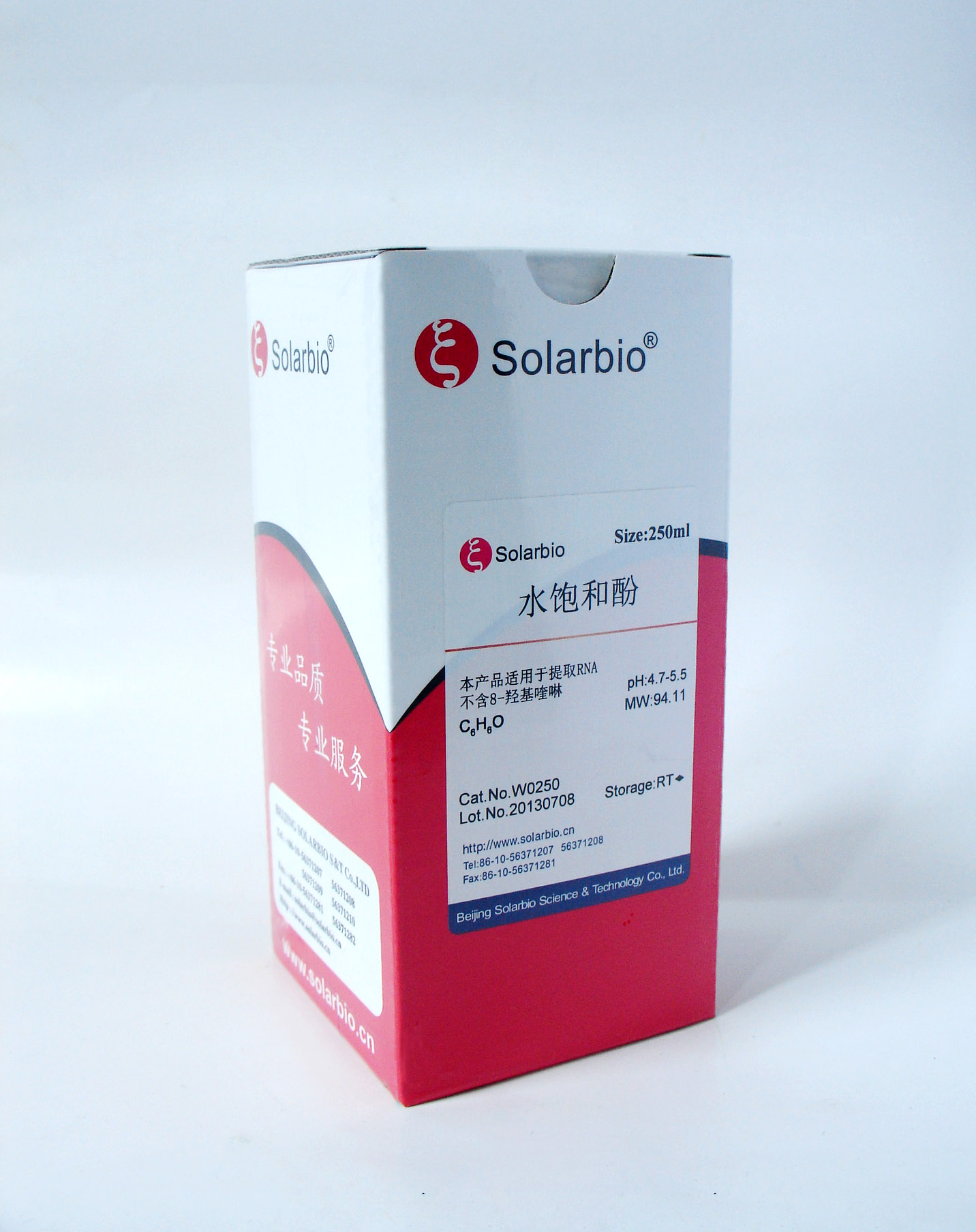 注意事项:水饱和酚有较强的腐蚀性,应尽量避免皮肤接触或吸入体内。如发现变为红色或棕色,表明已发生氧化,不能继续使用。保存要求:4℃,避光保存,有效期12个月。