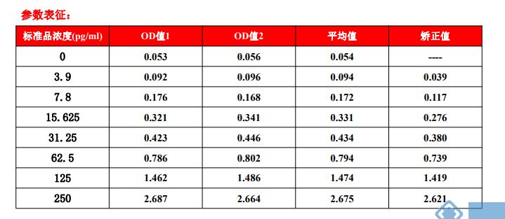 2 pg/ml(灵敏度),检测范围:3.9 - 250 pg/ml